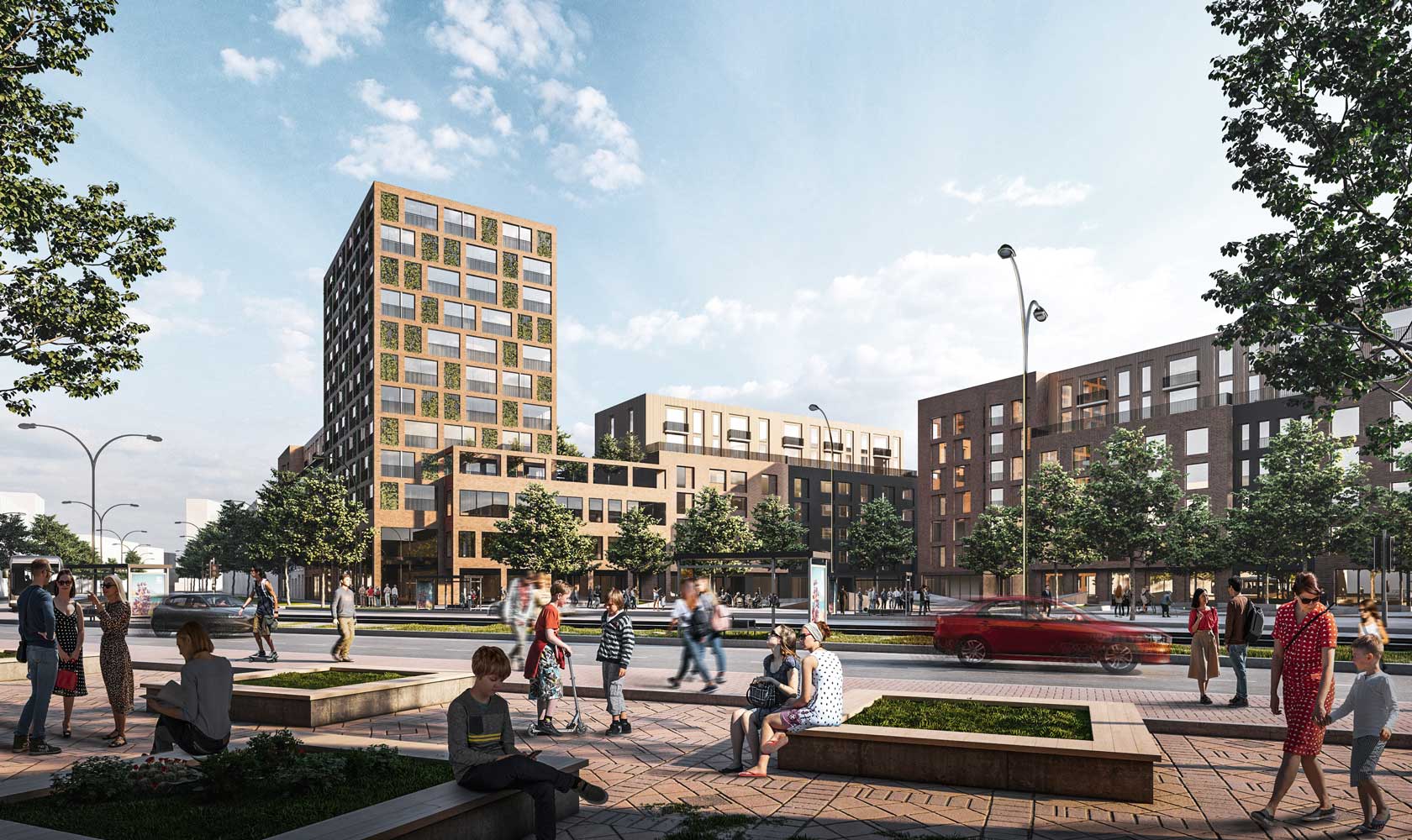 There has also been close cooperation with traffic planners, landscape designers and Sweco’s Fluid Dynamics (CDF) experts, who ensured that the new environment will be an urban space with pleasant wind comfort conditions. One of the carefully considered details was the 12-storey landmark building on the boulevard. A solution for the location, which is visible in the cityscape, was sought on the basis of an internal competition by Sweco’s architects.
